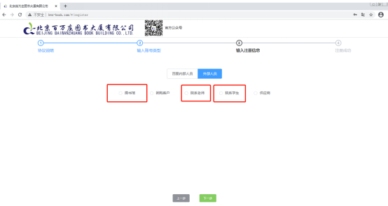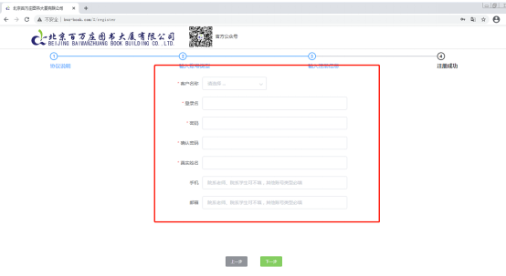 点击右上角的“登录∣注册”按钮中的注册,阅读注册协议并同意,选择身份(采编老师选“图书馆”,院系老师及学生选对应身份),选择自己的院校图书馆,填写注册帐号所需内容,填写完毕后点击下一步,等待工作人员审核,审核后刷新页面即可登录。院系老师及学生属于荐购账号,无需等待审核即可登录。