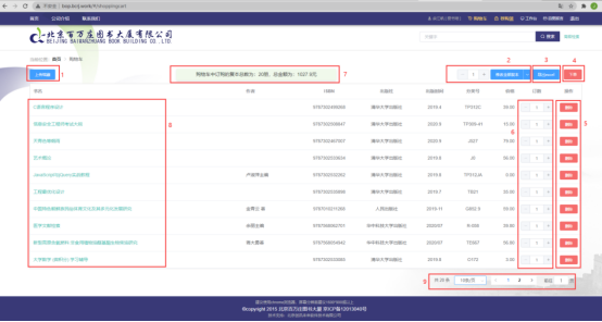 在采选页可以进行多种组合的筛选检索,可全选当前页面的所有图书,可修改选中图书的副本数,可查看图书的详情页面。
