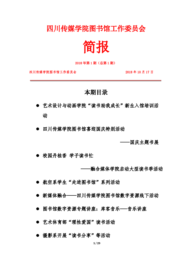 四川传媒学院图书馆工作委员会简报(一期)