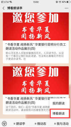 1.关注“博看朗读亭”微信公众号,点击菜单“我与活动”-“博看朗读”,进入小程序,点击顶部征稿活动图片或朗读活动版块,填写个人信息(姓名、联系电话等),并提交朗读作品录音即可。