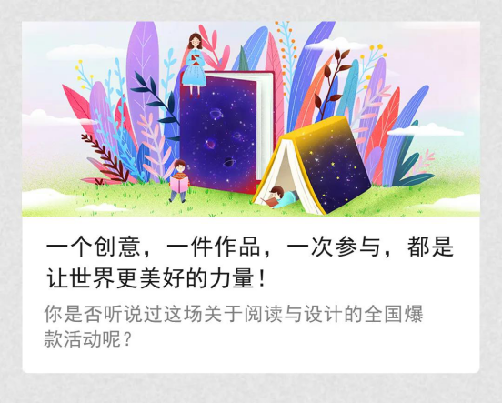 2、国际展特权:组委会将联合中国设计资讯集团开展“2020全球阅读推广国际公益海报展”,将从2020年6月20日前投稿的作品中挑选出100件与国外优秀海报作品共同展出,并颁发入展证书。