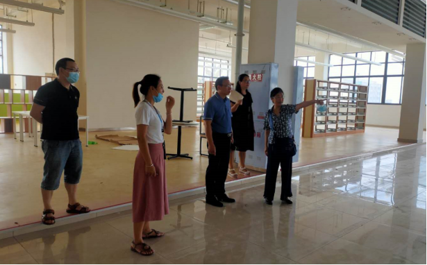 迎评促建,为给广大师生提供优美舒适的阅读环境, 2020年6月29日上午,设备中心杨处长、信息中心冯处长、图书馆时馆长等三部门10余人来到我校石堤校区图书馆现场就新馆内部细节打造问题进行协商沟通。