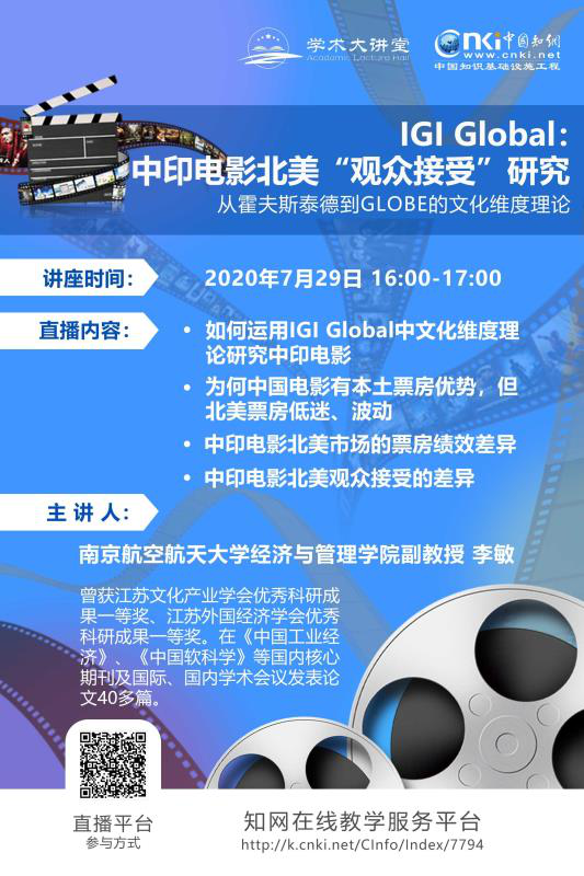 直播预告:IGI Global:中印电影北美“观众接受”研究—从霍夫斯泰德道GLOBE的文化维度理论