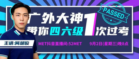 还好,通过MET我认识了女神陈诗远, 知道她创立了后英文时代, 还陪同几位英语学习界的大神(坤叔和何老师), 为四六级考试的同学打造了辅导课,从写对一个最基础的简单句,到人见人爱的写作模板, 再到听力翻译的得分秘籍, 我才知道, 学习不是东拼西凑的一万小时练习,而是先要掌握好自己的套路。 带着何老师帮我建立的自信,7月的考试我已经过了,但我知道, 那不只是运气,更多的我心里有底,有实力!因为我也可以是一次过考的同学了!9月份的四六级考试又快开始了,同学,不知道你是不是还在紧张备考。 听说何老师这次特地为MET同学们开一节直播辅导课, 我已经让我师弟师妹报名了,不管你是否已经准备好,多听一下前辈的指导, 校正一下自己,查缺补漏,心里一定更踏实,更从容。