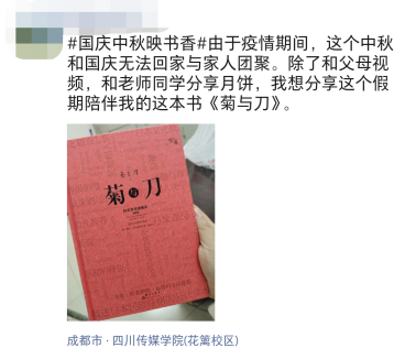 1.假期期间 编辑分享一条含有“国庆中秋映书香”主题的朋友圈。