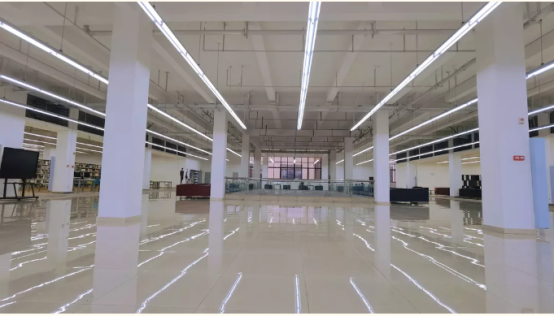 新馆二层为主服务大厅,设有新书展示区、报刊休闲阅读区、艺术类图书阅览区、展览区、总服务台、自助借还图书区、存包柜、自助图书消毒机等。