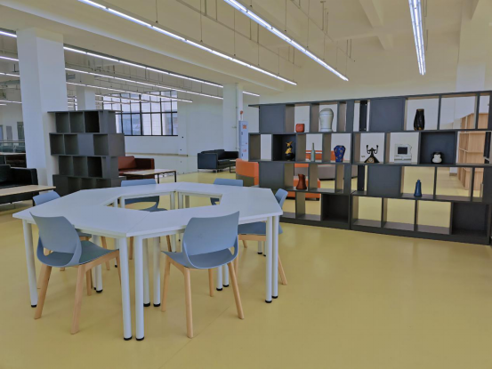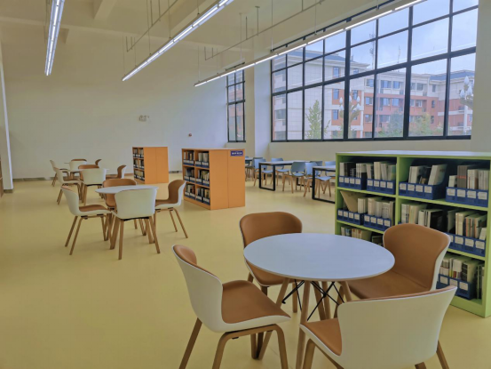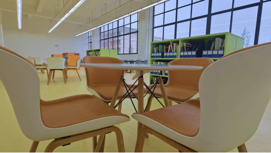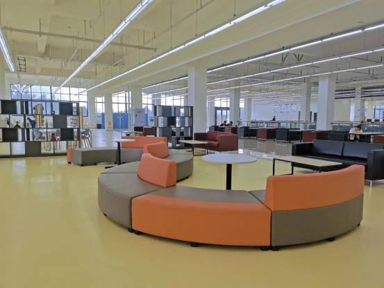 离开新书展示区,再往里走就是报刊休闲阅读区。这儿有两千多册期刊,在这里你可以与三五好友同坐,两人一桌的沙发式座椅,四人一桌的宿舍组合标配桌椅,环形围绕的小组探究学习式桌椅。各类桌椅的多种组合让你有更多选择。