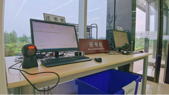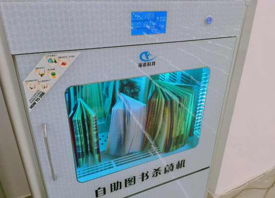 还书区的旁边还有自助图书消毒机,它可以让我们的图书在干净整洁的同时,增加其寿命。这是学校特意为了疫情防控所设置的。
