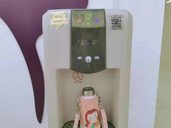 在图书馆二楼电梯处还设有饮水机,可以保障同学们在阅读学习之余的饮水需求。厕所洗手台上也贴心为同学们准备了洗手液。
