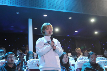 在彭老师的交流过后,主持人上台开始了互动环节。同学们与老师积极互动进行发言,并在自己有疑惑的地方向彭老师提出问题,彭老师也非常有耐心的为同学们进行了解答。