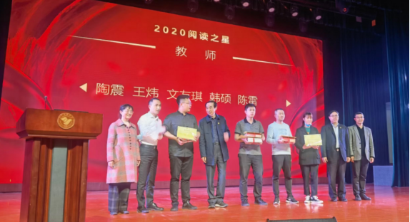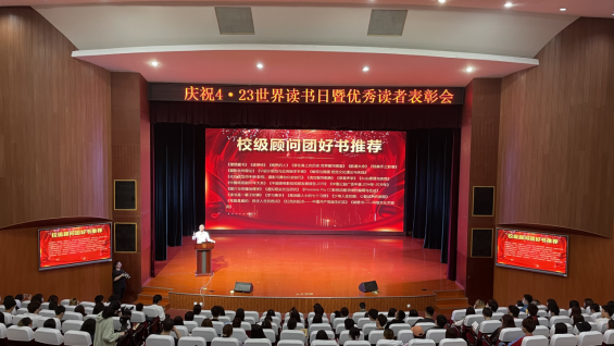 4月23日,由我校图工委、学工部、校团委、图书馆联合组织的“庆祝“4.23世界读书日暨优秀读者表彰会在学校艺术交流中心召开。