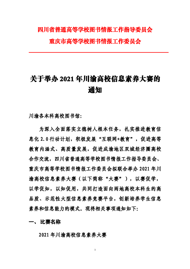 关于举办2021年川渝高校信息素养大赛的通知