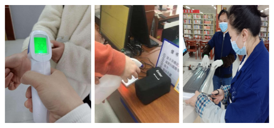 图书馆工作人员每日进行各区域消杀工作