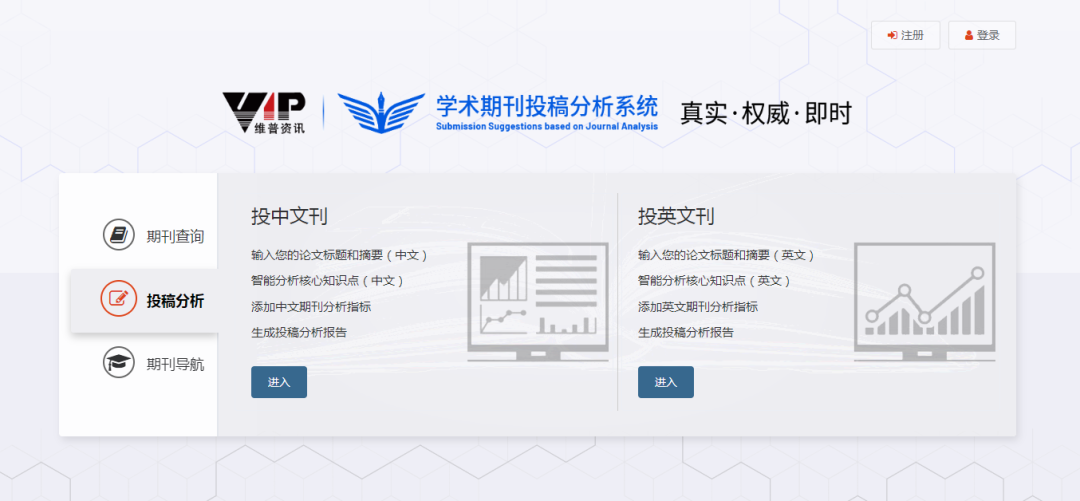 维普学术投稿分析系统是基于国内外常用数据库的期刊数据为基础,实现基于作者稿件的内容进行大数据分析,为投稿用户提供多种指标为基准的期刊投稿指南。