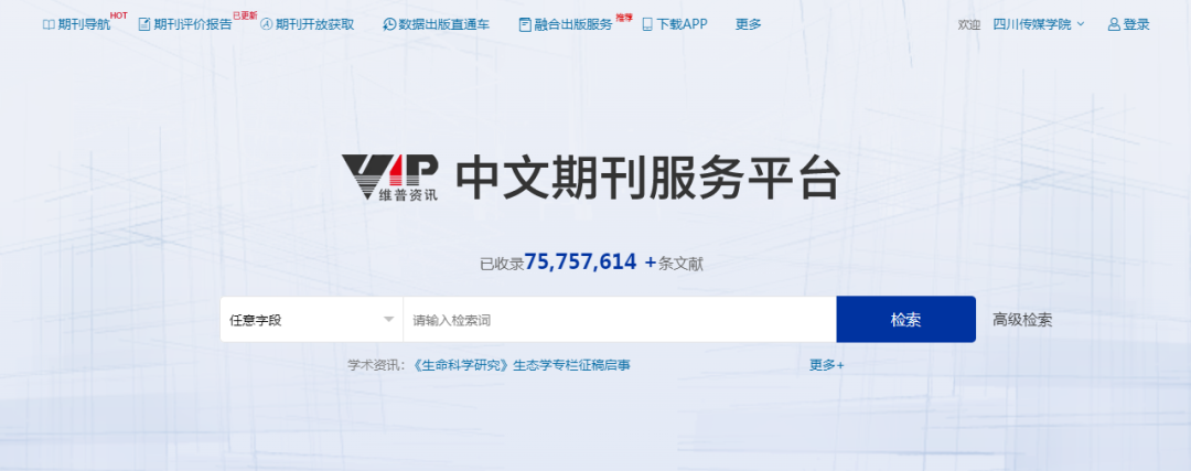 《中文期刊服务平台》是以中文期刊资源保障为核心基础,以数据检索应用为基础,以数据挖掘与分析为特色,面向教、学、产、研等多场景应用的期刊大数据服务平台。