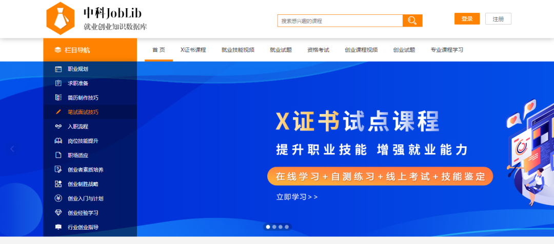 为同学们提供视频课程、专项习题、知识资讯、法律法规、材料模板等多种资源以及完整科学的就业创业知识体系。