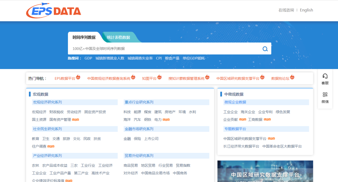 EPS(Easy Professional Superior)数据平台是集丰富的数值型数据资源和强大的云分析系统为一体的覆盖多学科、面向多领域的综合性统计数据与分析平台。