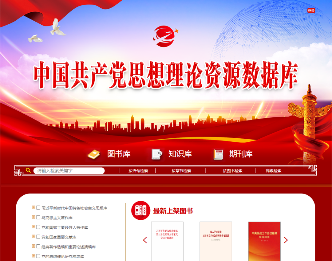 中国共产党思想理论资源数据库,是在中央领导同志的亲切关怀和中共中央宣传部的有力指导下,由人民出版社开发建成,被党政干部和专家学者称为"用科学技术传播中国化马克思主义的重大创新工程"。