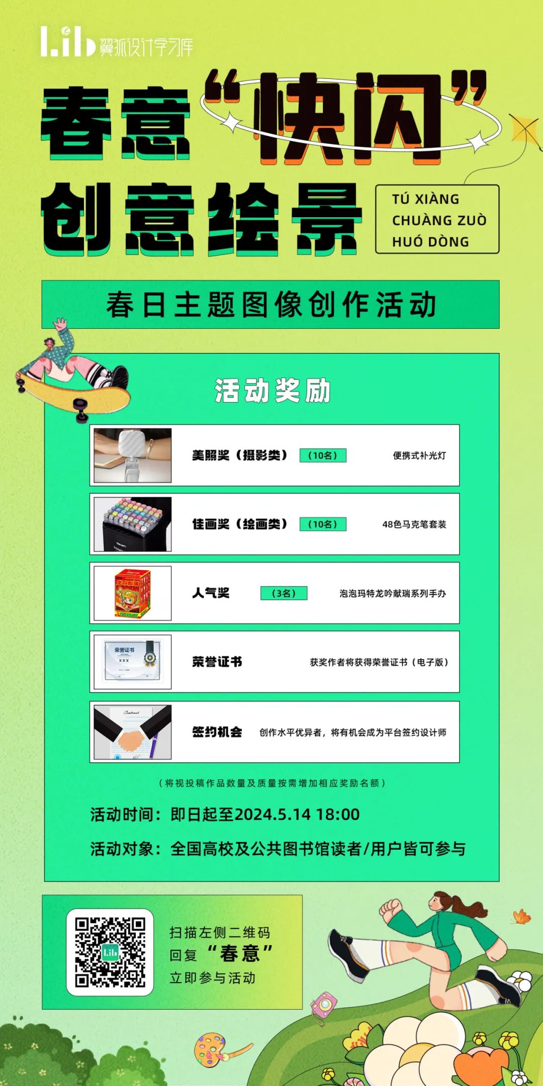 1、作品征集时间:即日起至2024年5月14日18:00,截止时间前都可报名参与活动。