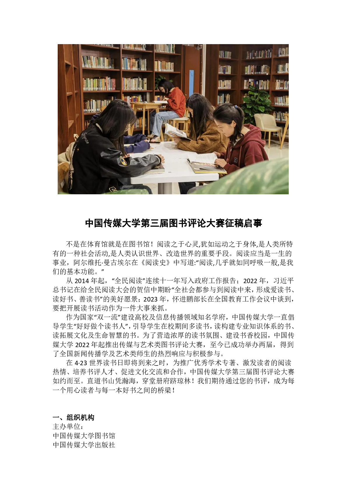 活动预告:中国传媒大学第三届图书评论大赛征稿启事