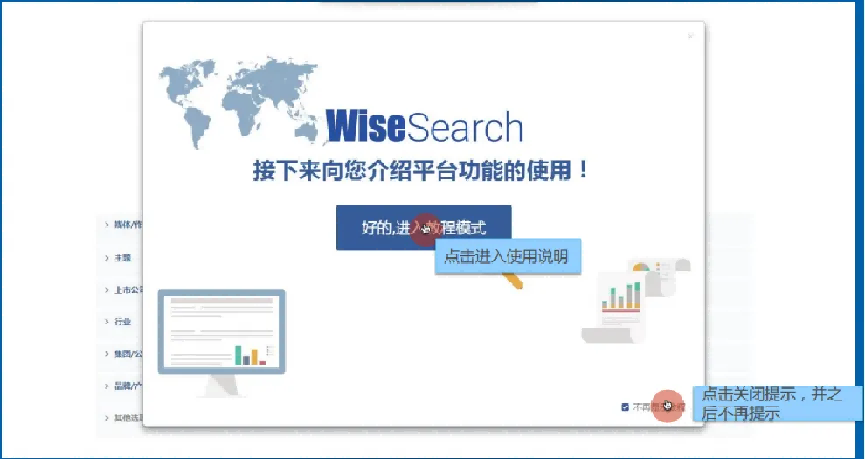 首次使用慧科搜索的用户,登录后会提示“使用方法”