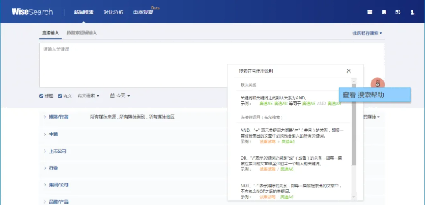 慧科搜索(WiseSearch)数据库是致力于满足用户对在新闻搜索/浏览、传播分析、案例研究的需求,在满足对新闻全文数据的需求下,帮助用户深入研究事件传播特点,灵活分析特定媒体/版面新闻报道,快速发现用户关注的热点新闻,高效的进行新闻检索,节约用户大量宝贵时间。