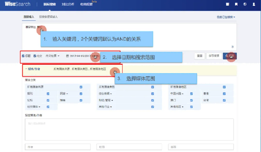 6.灵活易用:实用的媒体分析工具,只需一分钟,即可创建媒体对比分析条件;按媒体类别、出版地、作者、版面等极具新闻属性的检索维度。